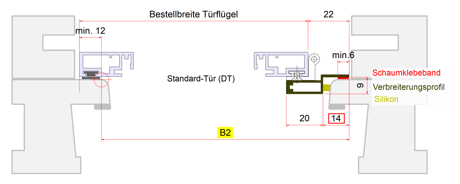 Bestellbreite Türflügel: Maß B2 - 10 mm*