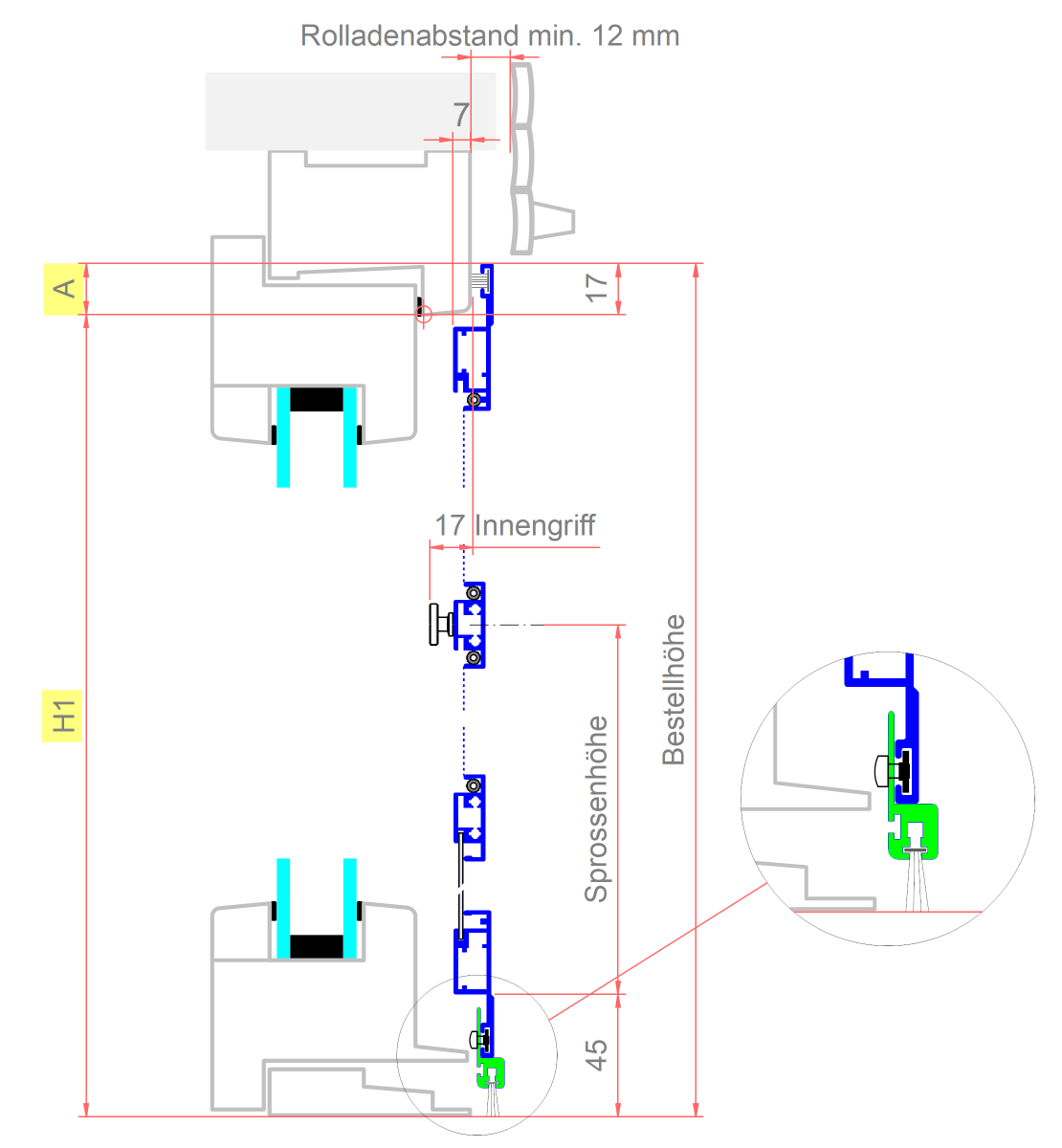 Messen Sie vom Fensterrahmen bis zum Rolladenpanzer.