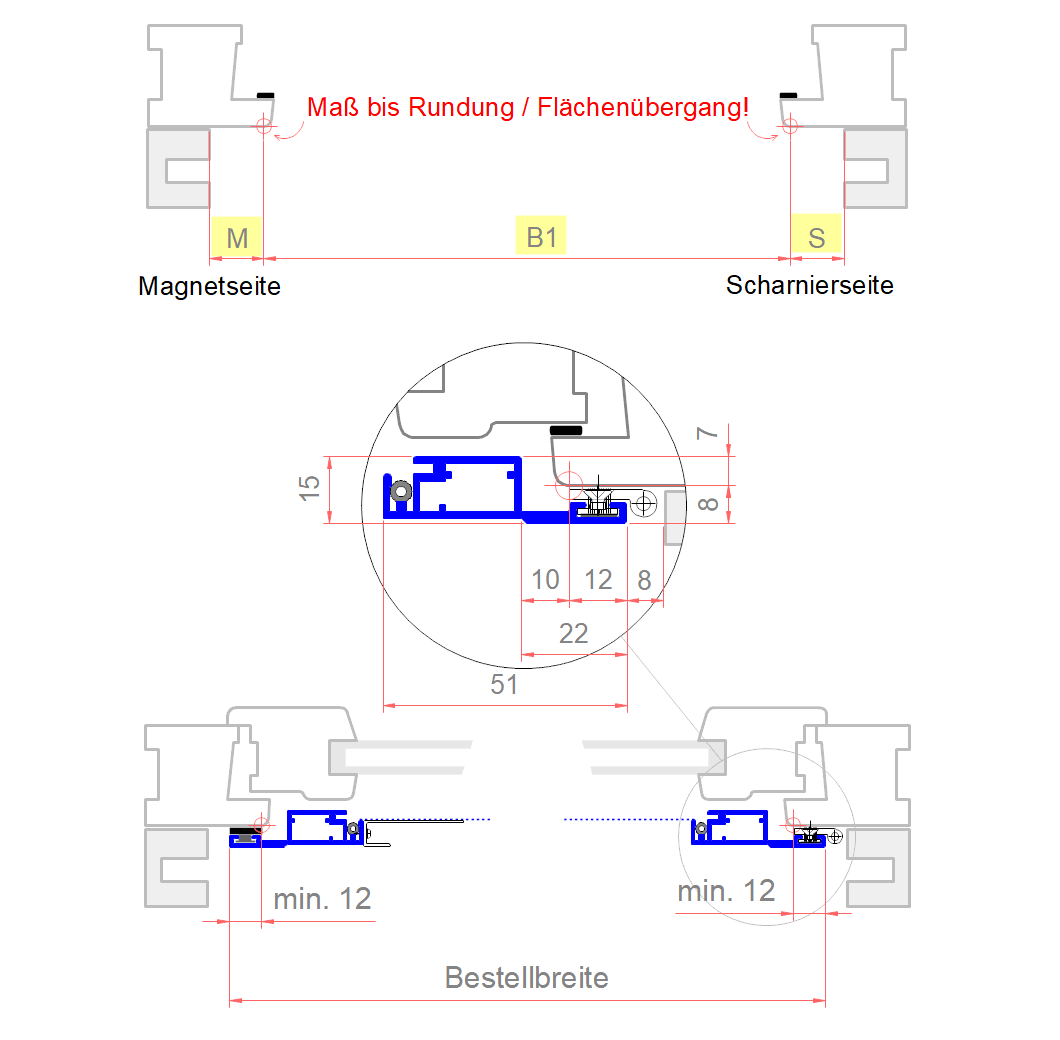 Wichtig! Türrahmen können verzogen sein - mehrere Stellen messen und das größte Maß annehmen