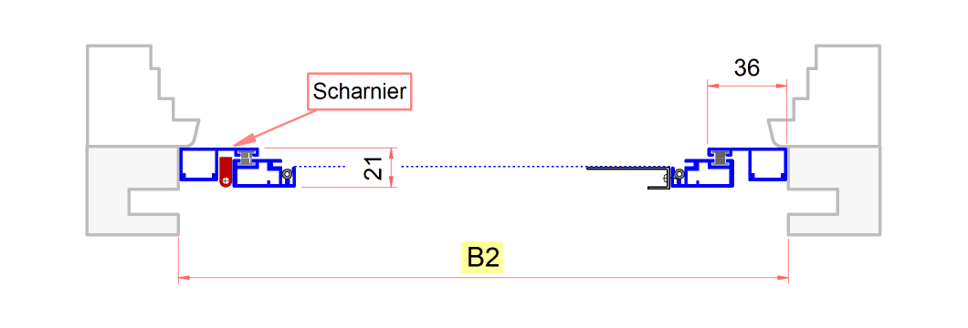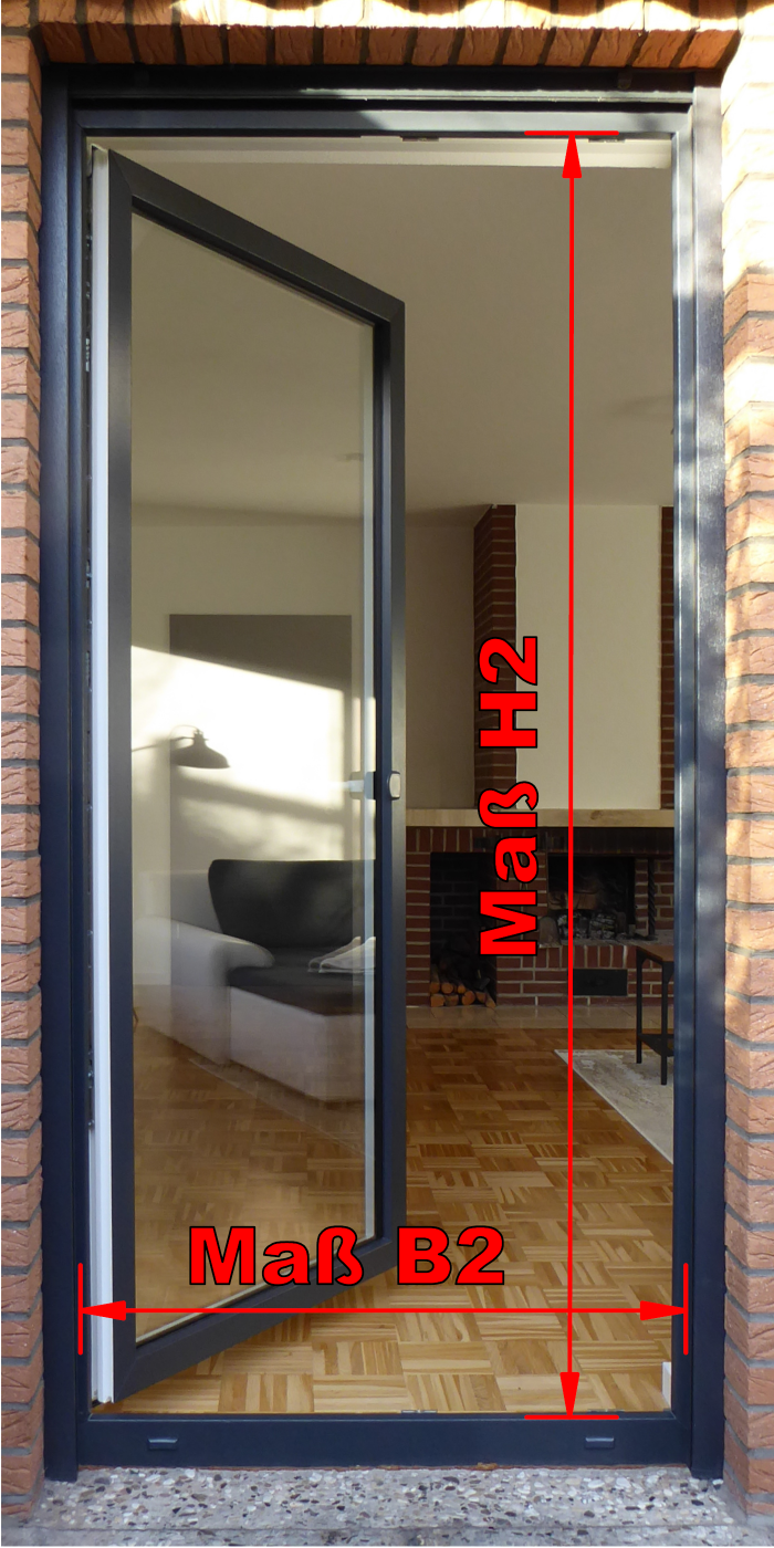 B2 - 4 mm = Bestellmaß Breite (Türrahmenmontage)