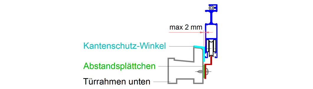 In diesem Fall würde der Rolladen an der Schiebetür schleifen oder sich nicht mehr schließen lassen. Oft sind breite Rolläden verzogen und liegen in deer Mitte enger am Türrahmen. Manchmal kann dieses Problem gelöst werden, indem ein abgerundeter Kunststoffklotz hinter dem Rolladen montiert wird.