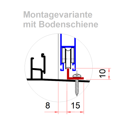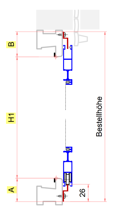 Rahmenprofile Aluminium 60 x 13,5 mm, mit durchgehender Griffmulde innen und außen. Führungsschienen 26 x 9 mm, optional Boden-Winkelschiene 15 mm breit, 10 mm hoch. Laufrollen mit Edelstahl-Kugellagern, austauschbar, Aushängesicherung mit Hex-Schlüssel entriegelbar. Rahmen auf Gehrung mit Eckverschraubungen, Gewebe nach Wahl