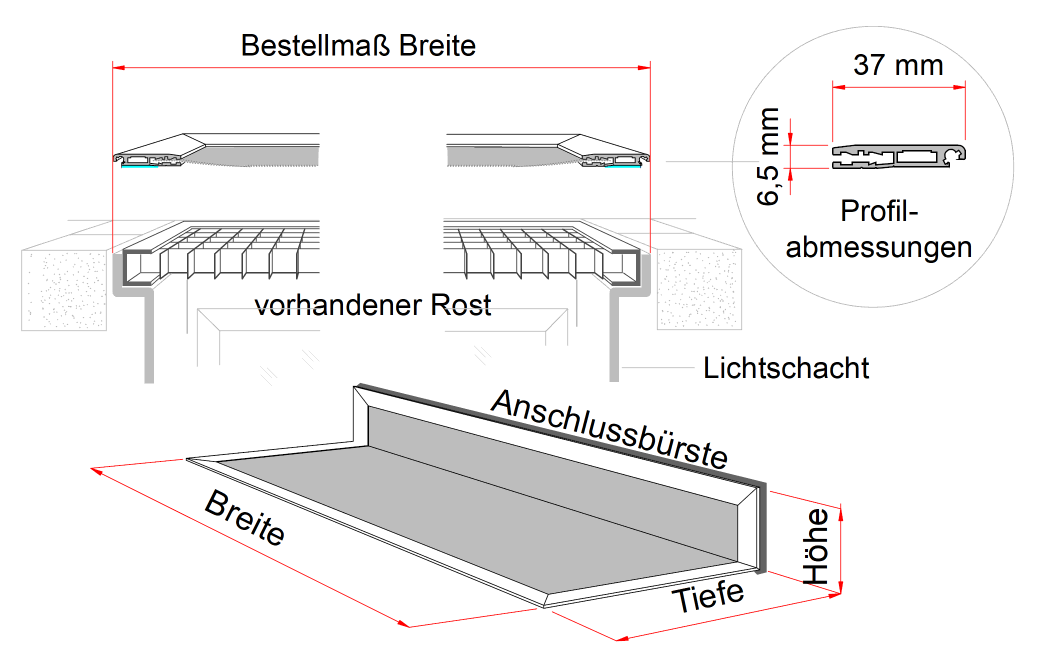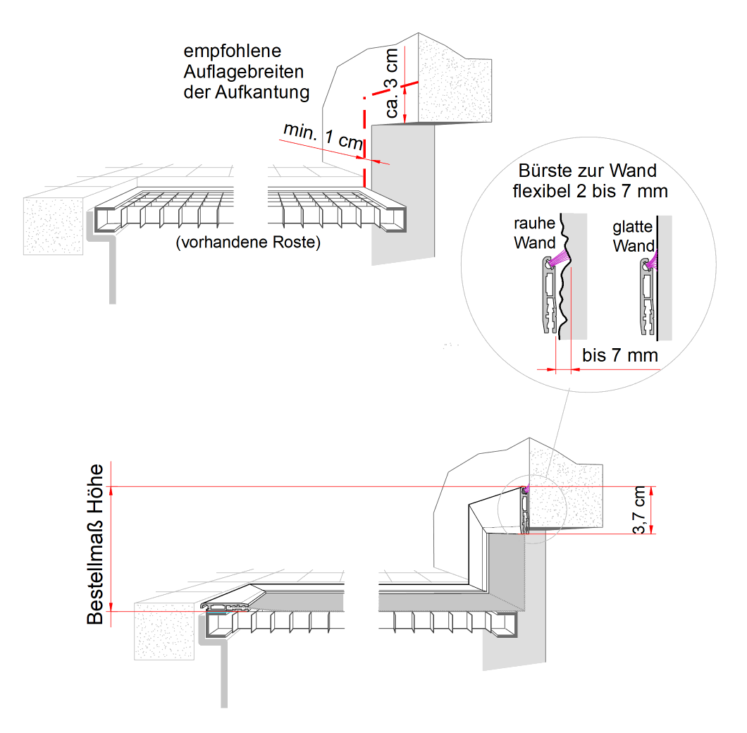 Oberfläche Roste bis geplante Oberkante= Bestellmaß Höhe