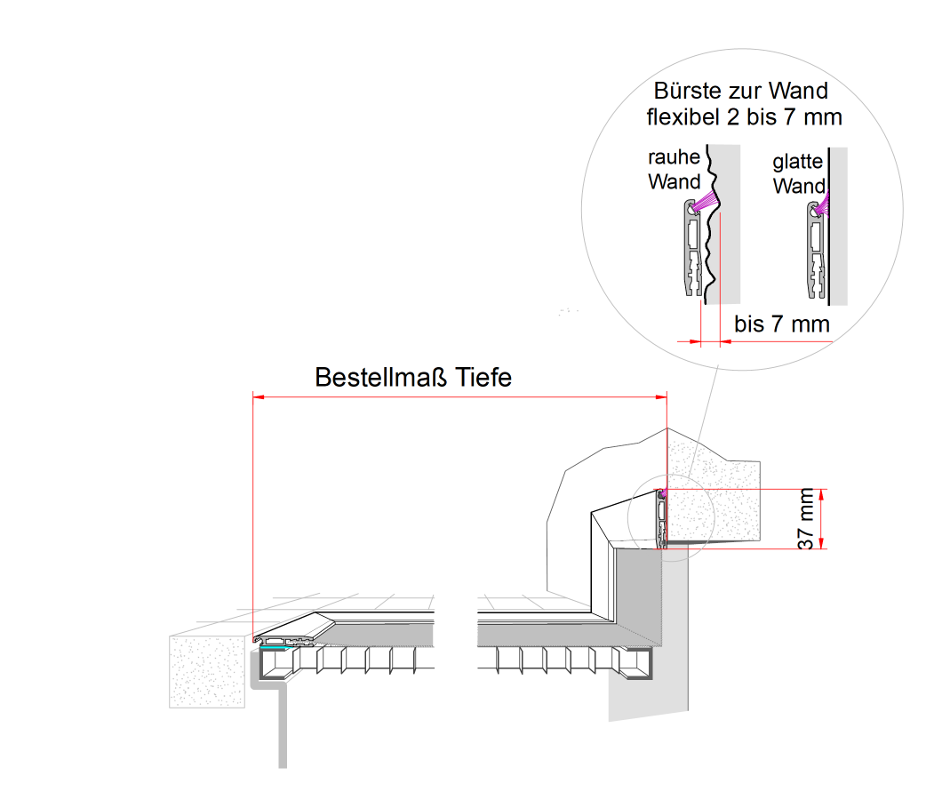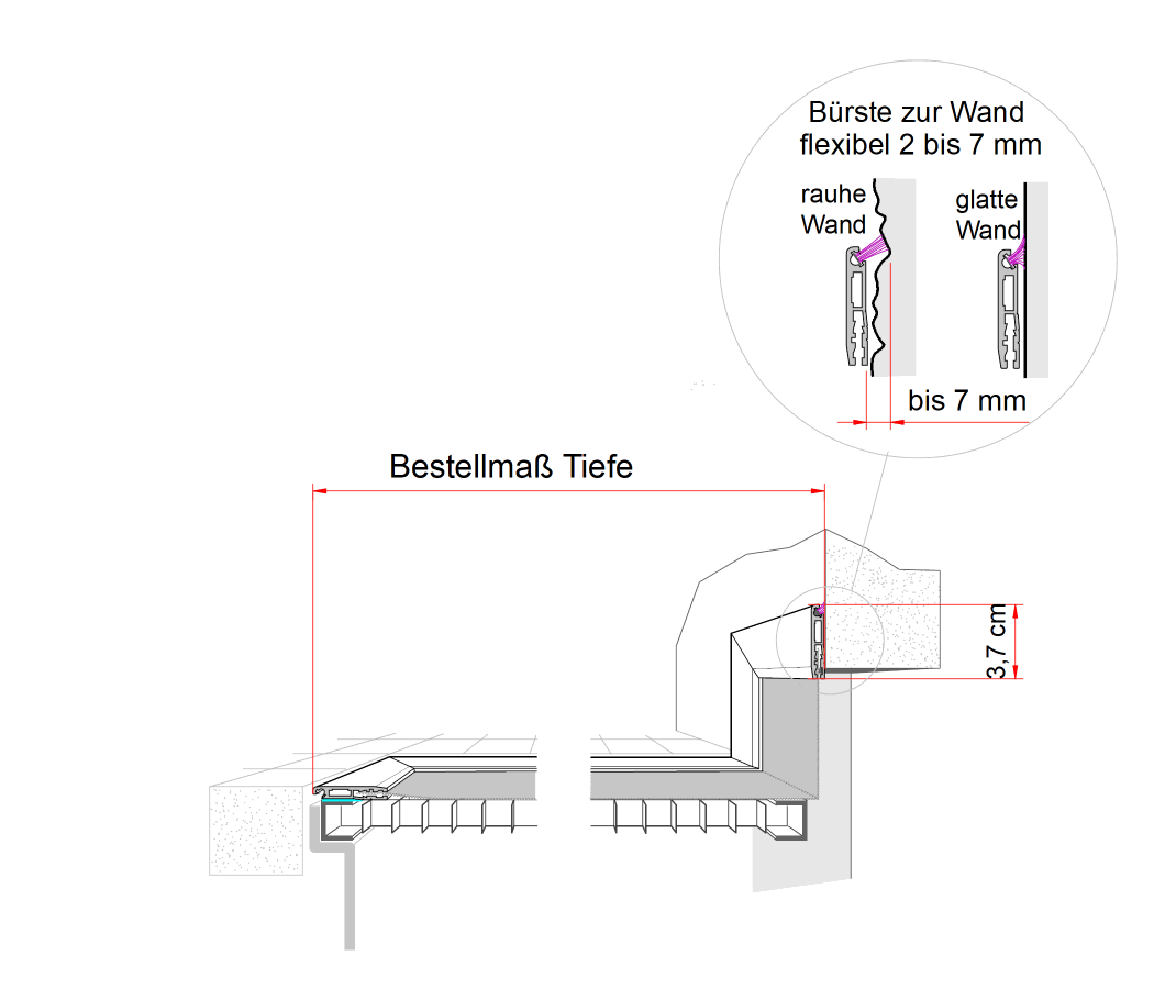 Geplante Vorderkante bis Wand = Bestellmaß Tiefe