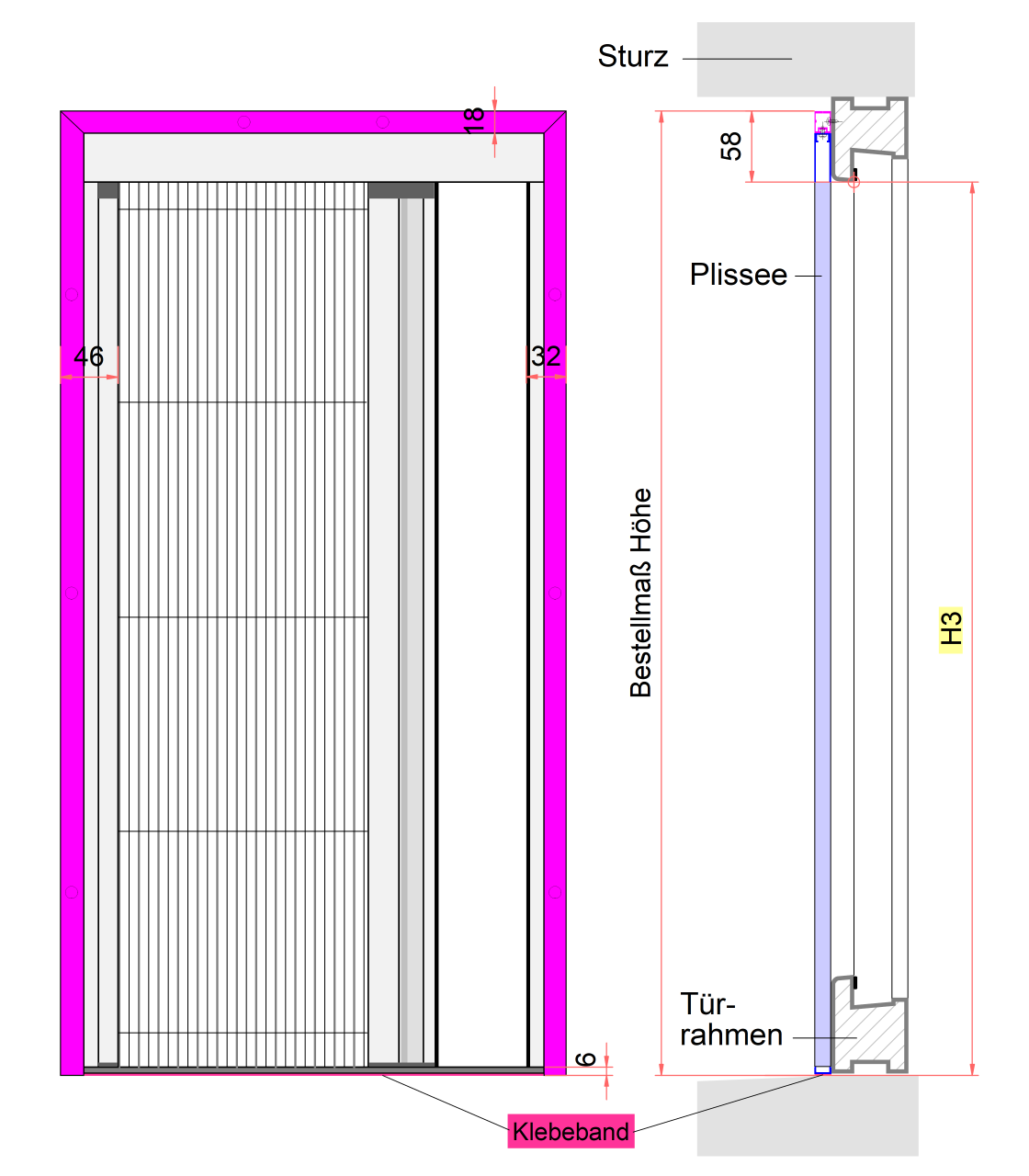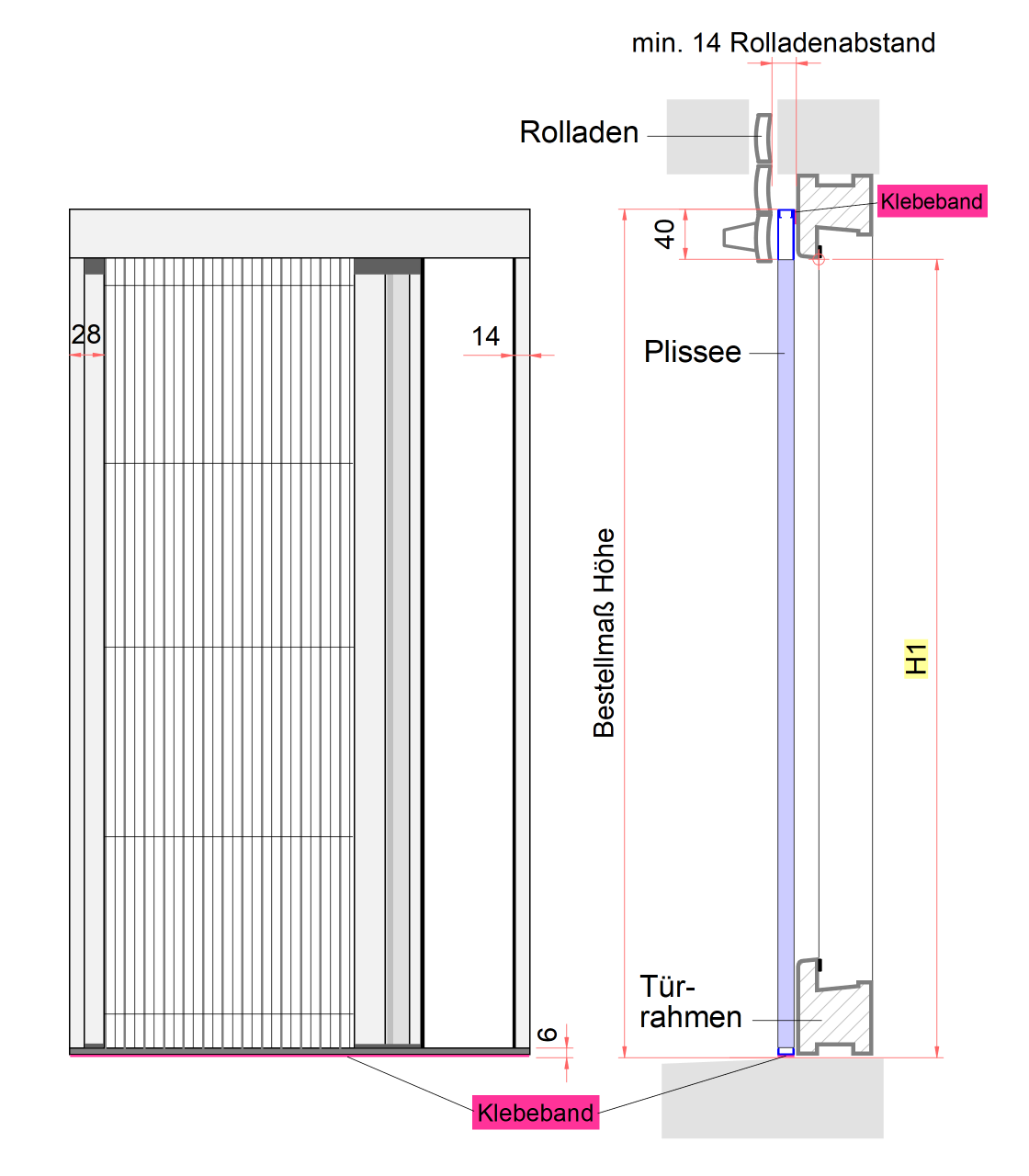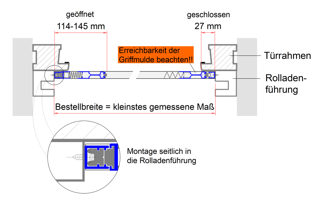 Bitte unbedingt Rolladenabstand prüfen! Min. 14 mm erforderlich (Bautiefe-Plissee= 13 mm)