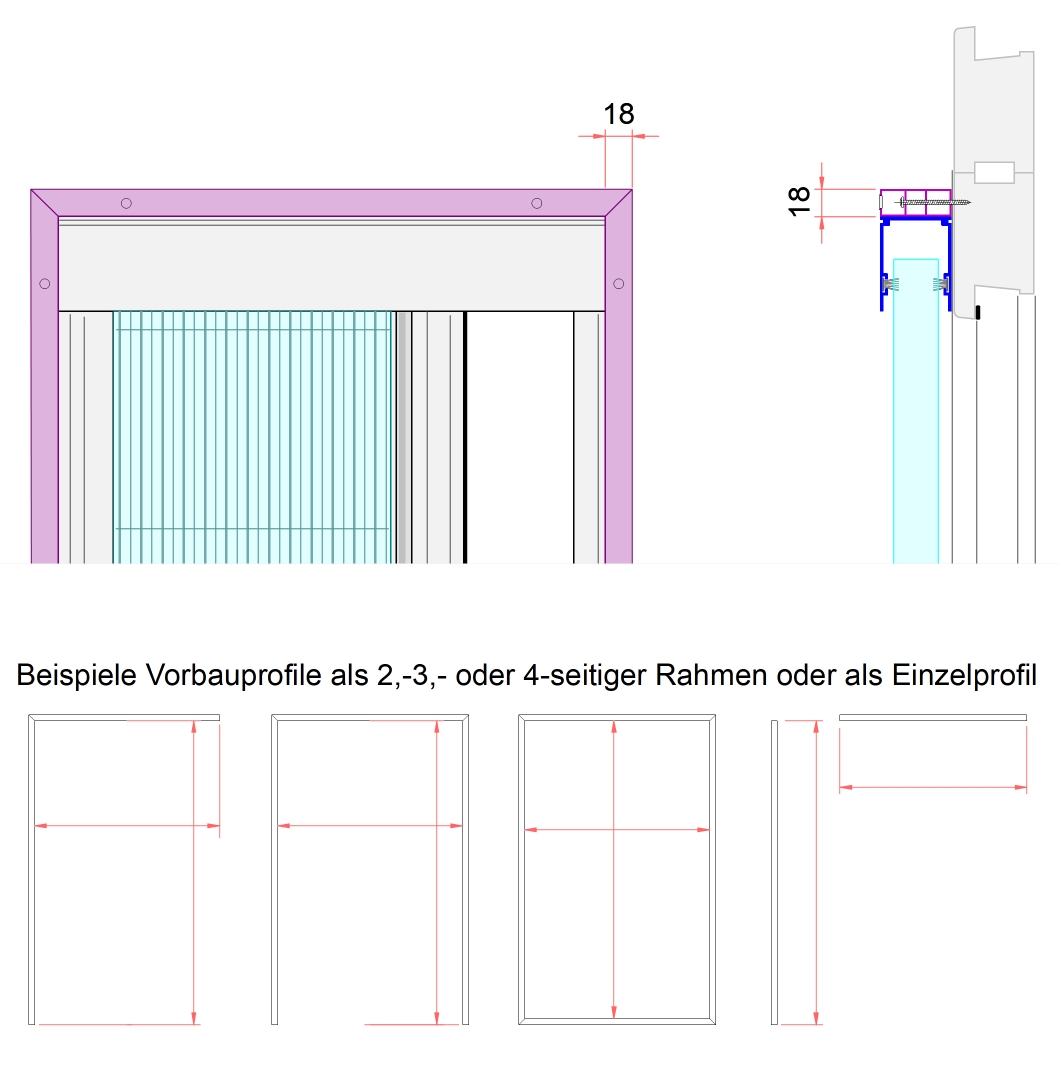 Vorbauprofile ersetzen bzw. ergänzen eine nicht (vollständig) vorhandene Leibung.