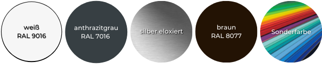 Befestigung:Für die Verschraubung liefern wir die Profile gebohrt, mit Stufenbohrungen, Schrauben und Abdeckkappen in weiß oder schwarz.
