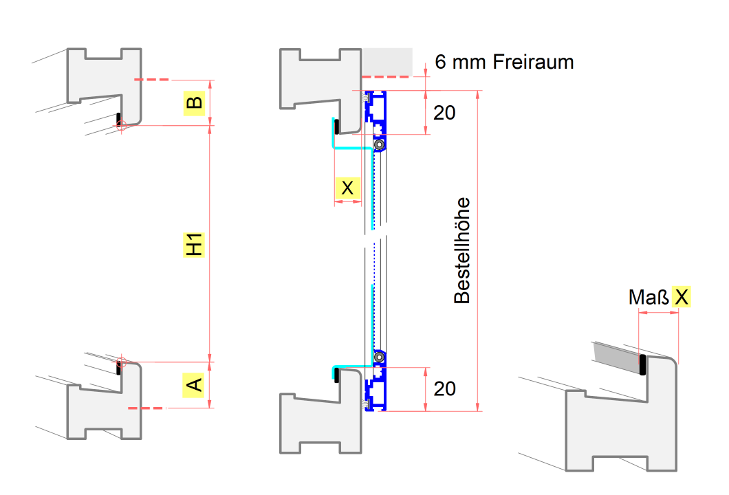 Diese Option wird ab einer Bestellhöhe von 1700 mm empfohlen!