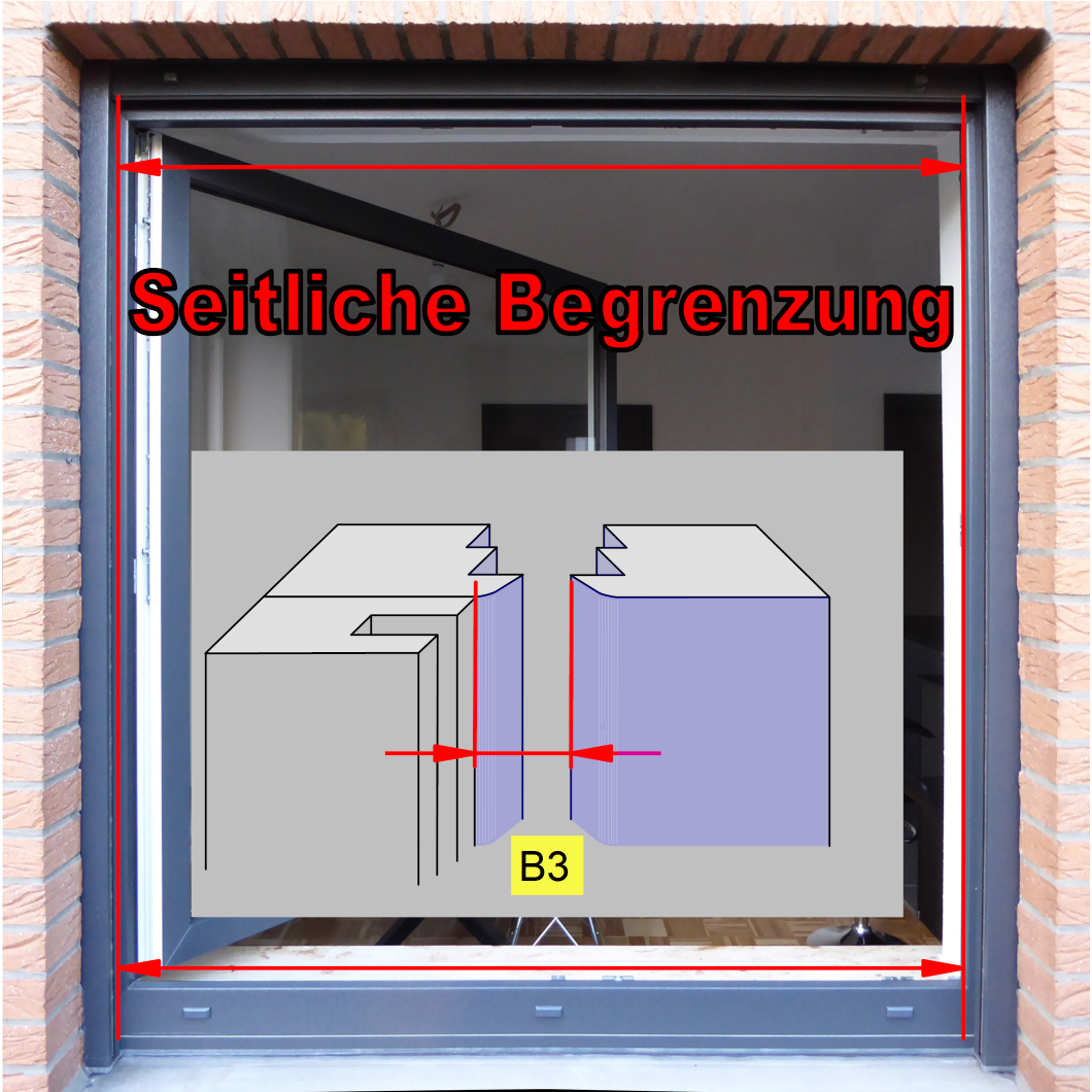 Bausatz nach Maß, Aluminiumprofile 30 x 10 mm, mit Alu-Eckverschraubung, seitliche Bürstendichtungen, 4-Punkt-Befestigung mit rostfreien verstellbaren Beschlägen (von aussen nicht zu sehen), Gewebe nach Auswahl