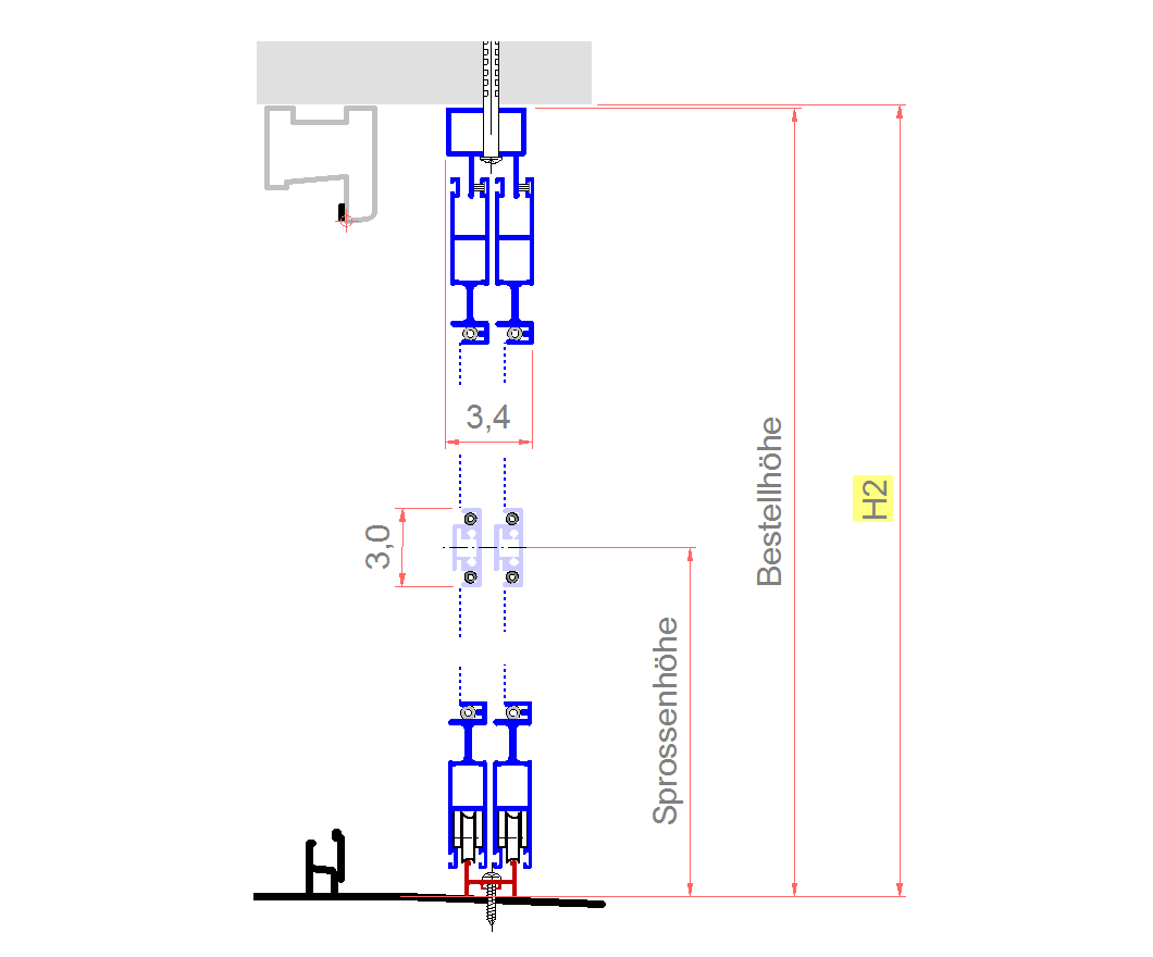 H2 - 4 mm = Bestellmaß Höhe (Leibungsmontage)