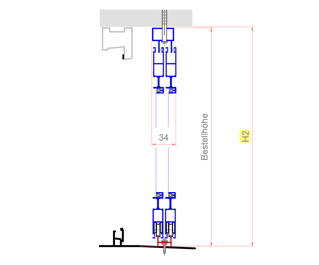 H1 + 60 mm (mind. 40 mm)= Bestellmaß Höhe (Rahmenmontage)