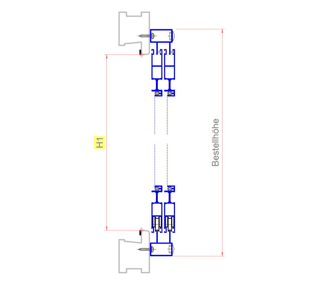 - Messen Sie die lichte Höhe des Türrahmens (Maßpunkte beachten), das Maß ist in der Zeichnung mit H1 angegeben.